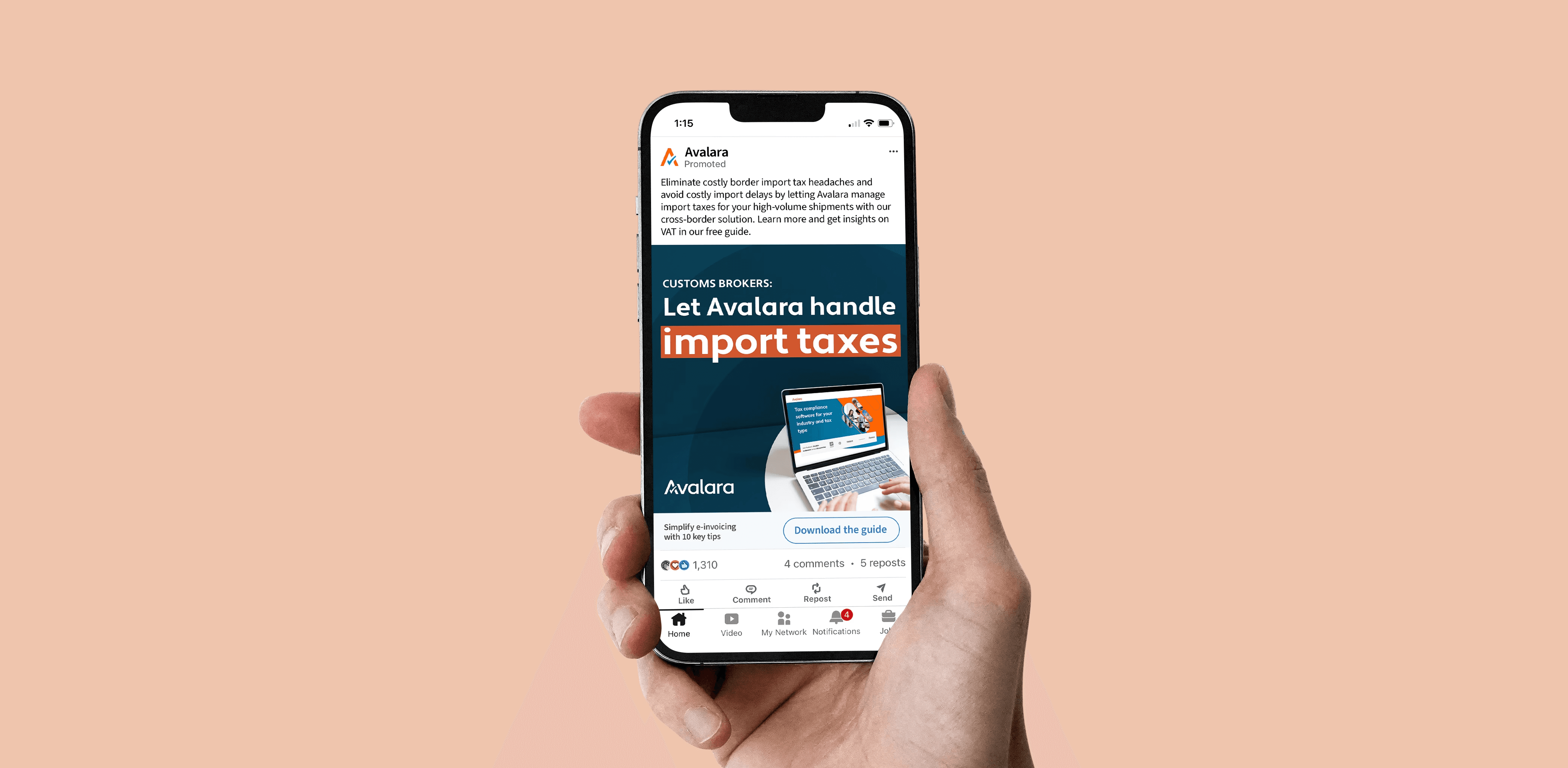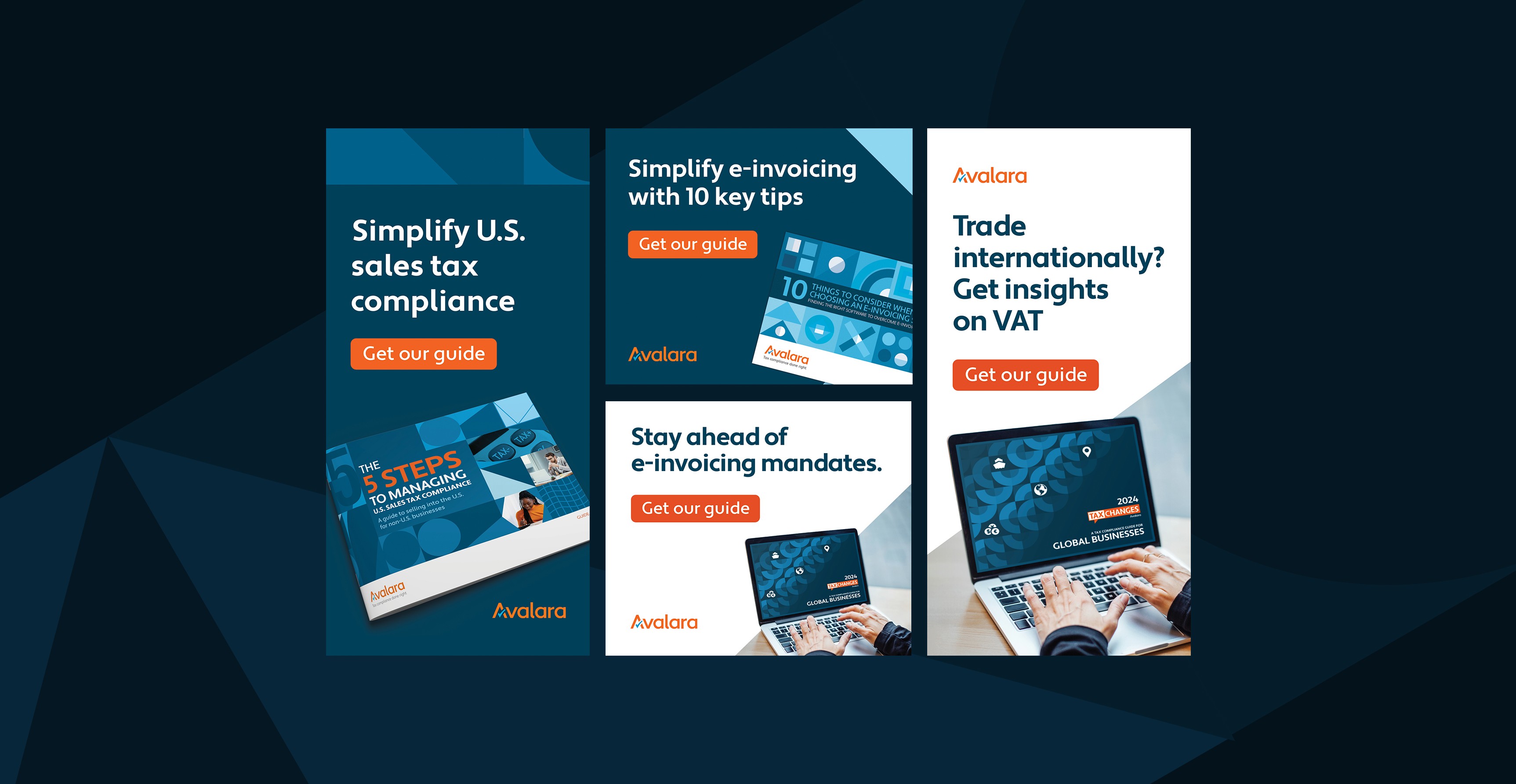 Design Agency Rupert gave me the opportunity to create 3 sets of digital ads and LinkedIn ads for a global leader in sales tax automation, Avalara. This campaign is targeting tax brokers who do high-volume international shipments with a goal of getting them to download Avalara's latest insight guide on tax compliance.